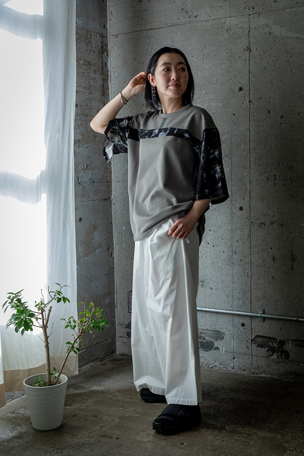 ボリューム感たっぷりのワイドパンツとの相性もよく、締め付けなくストレスフリーで着ていただけます。