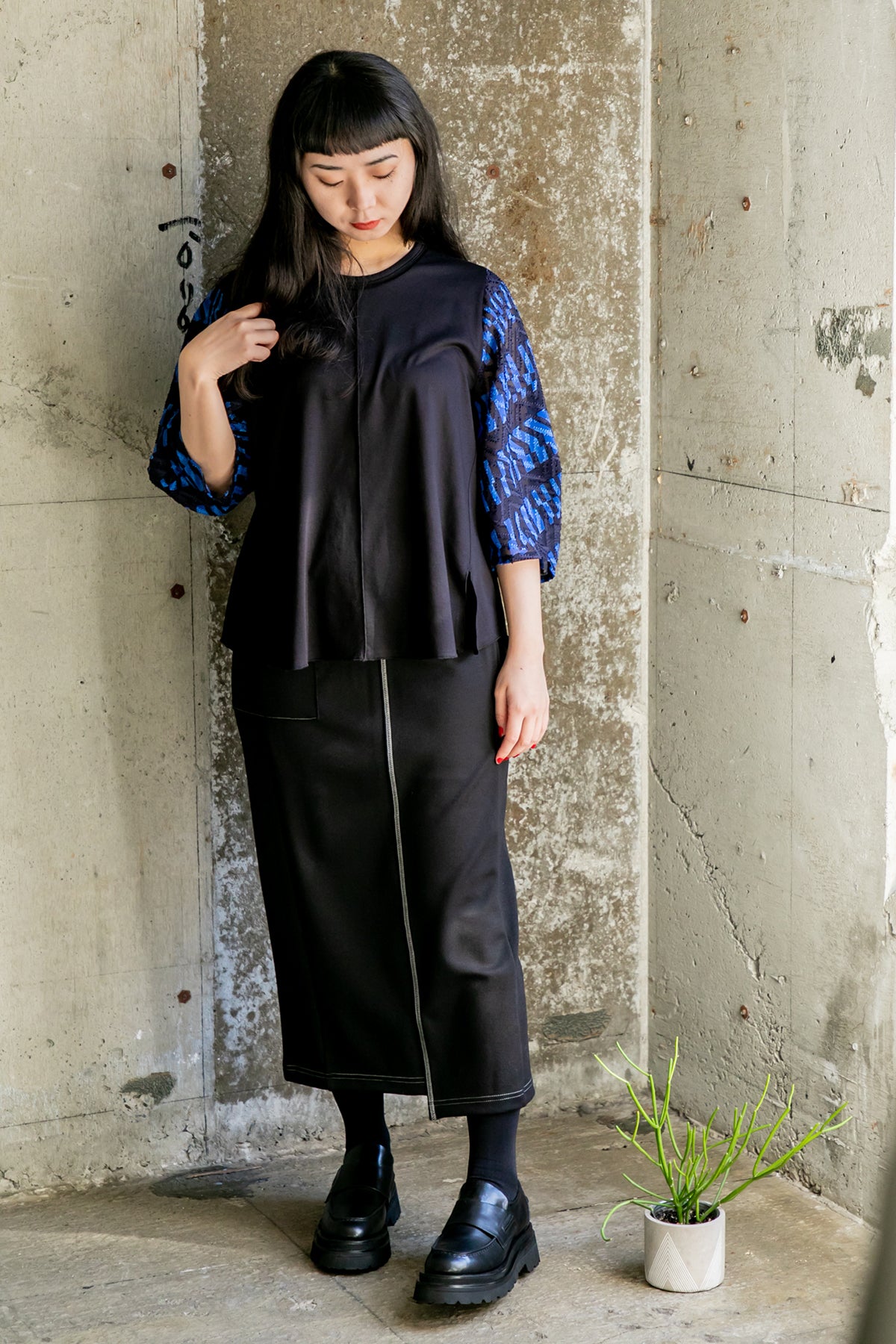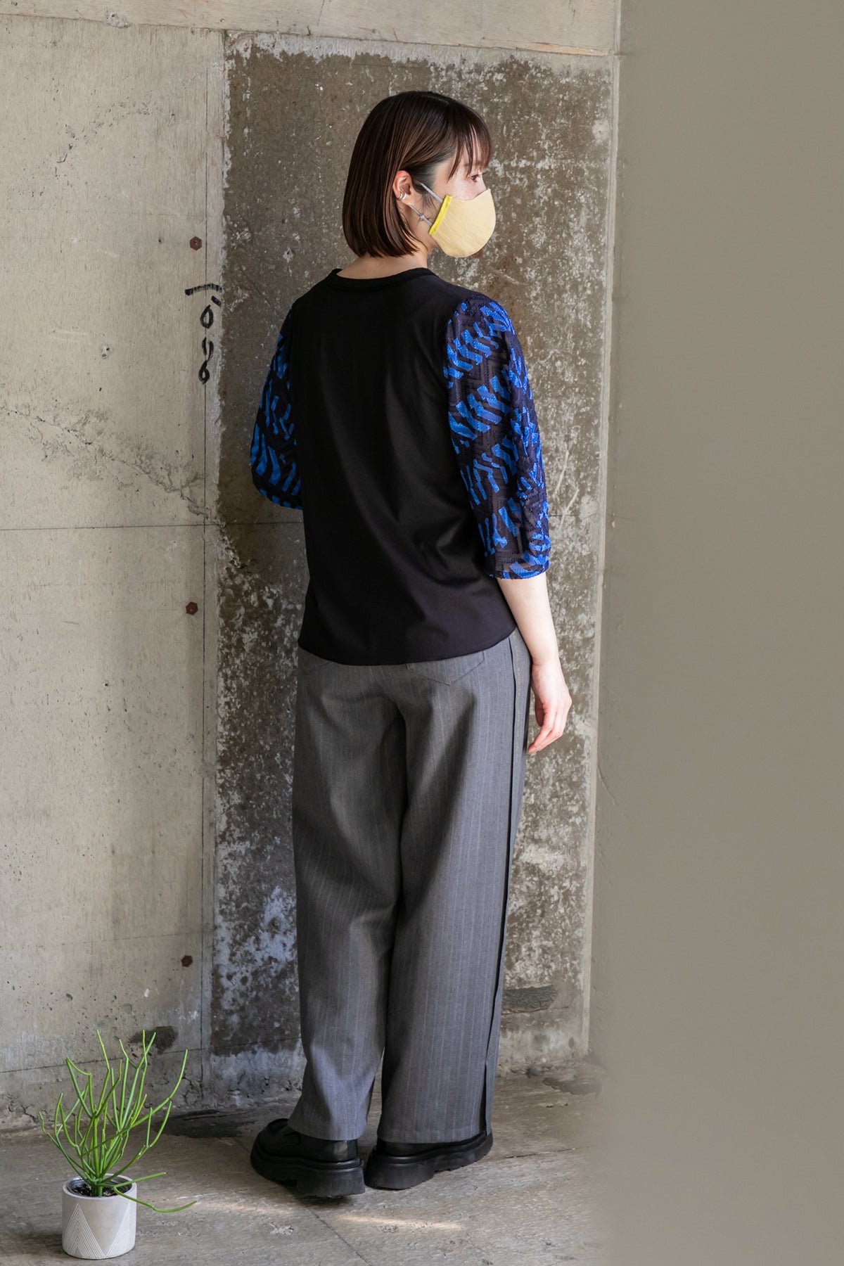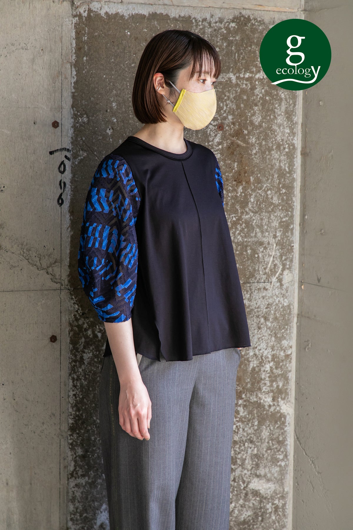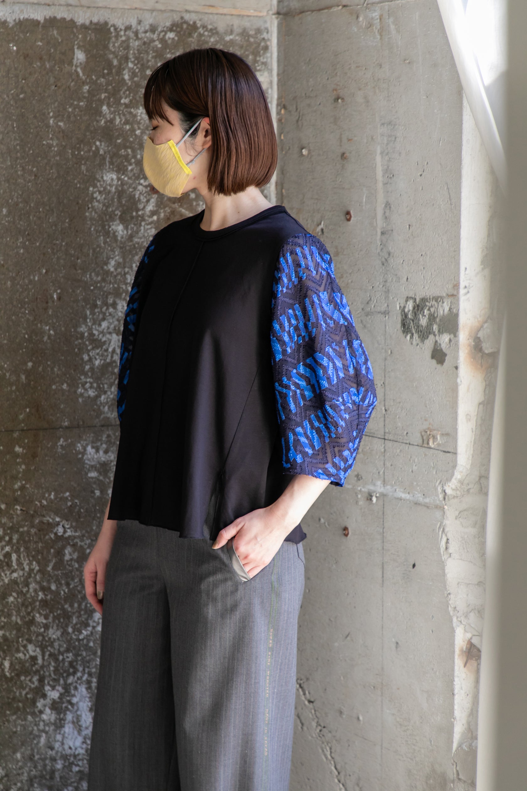 透け感のあるバルーン袖がポイントのブラウスのようなカットソー。