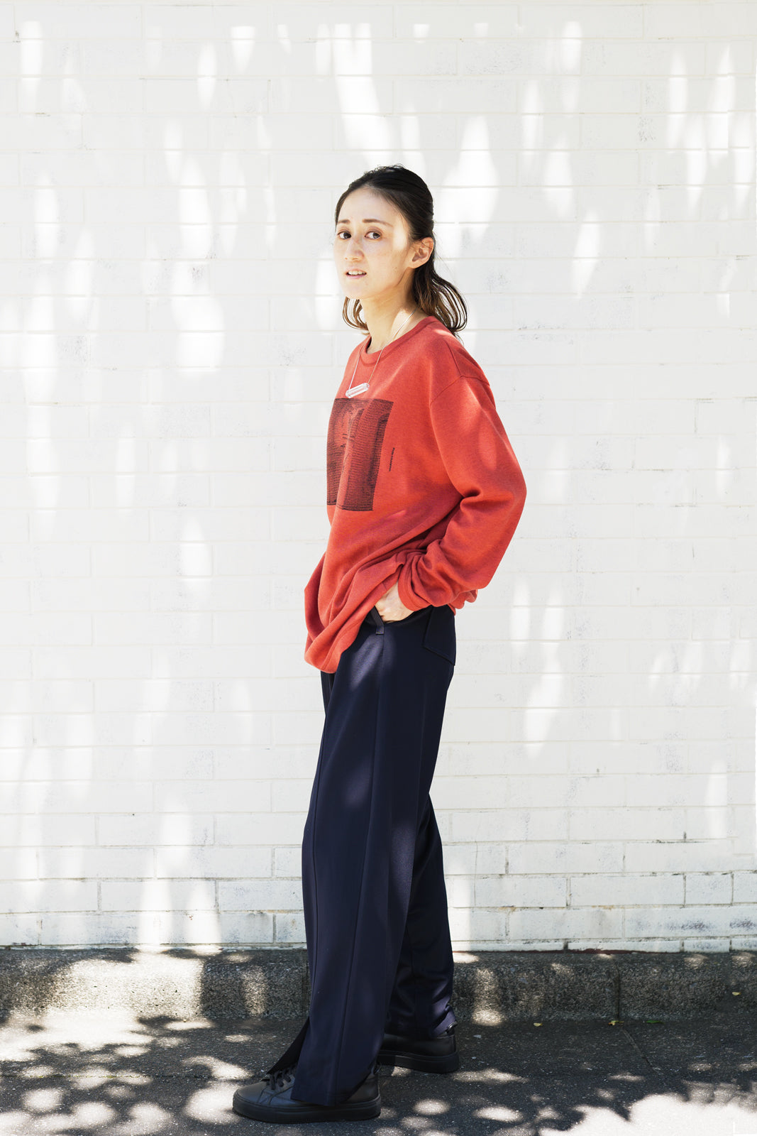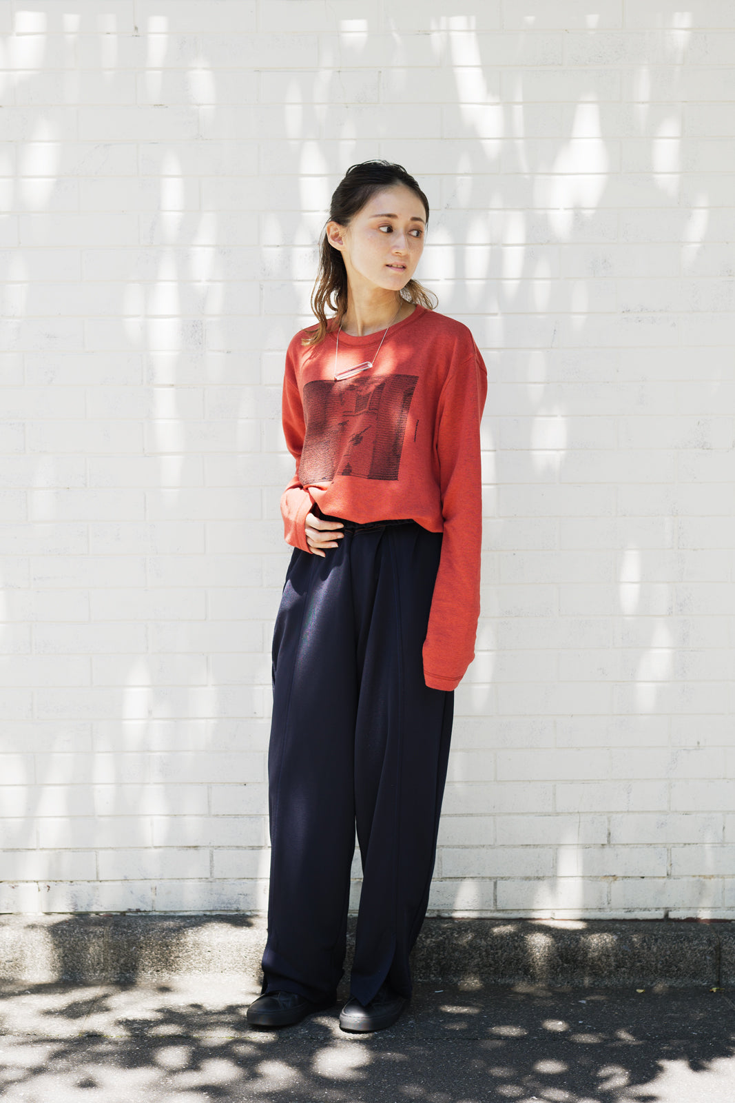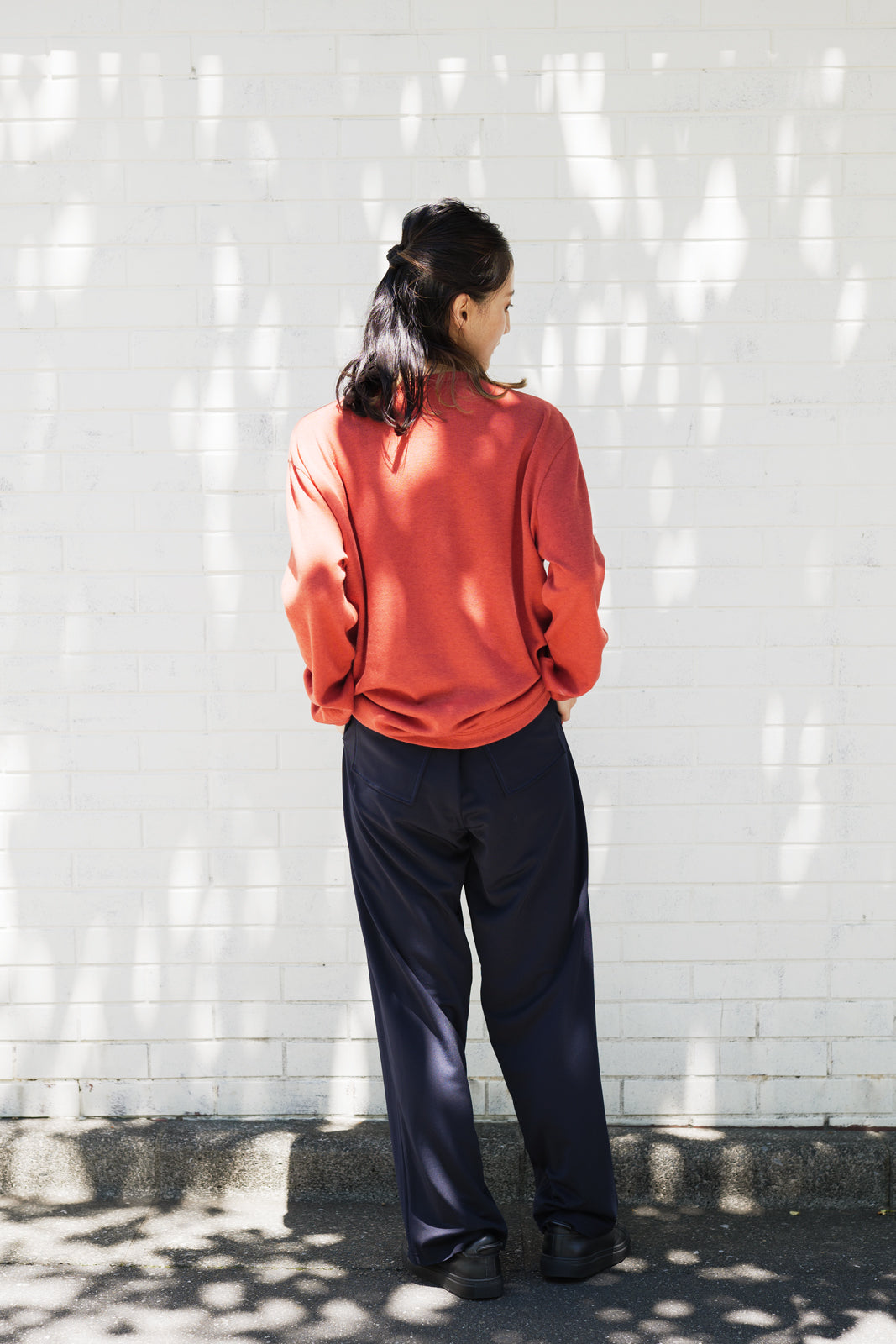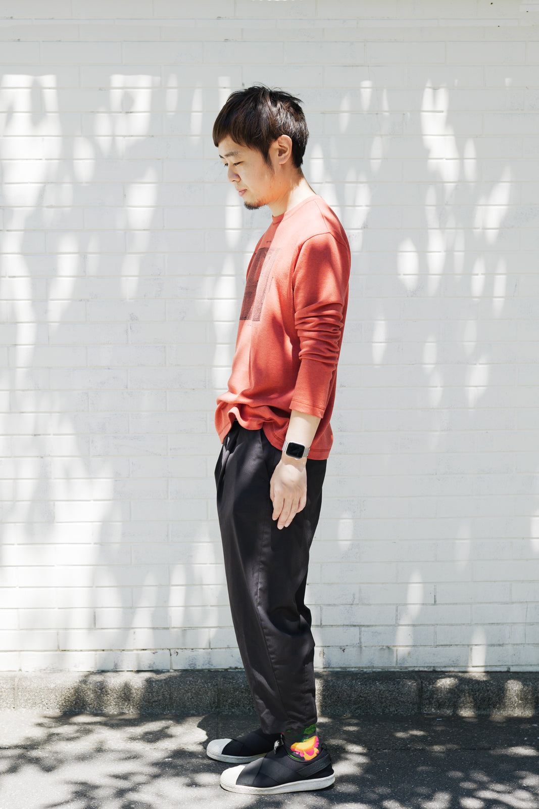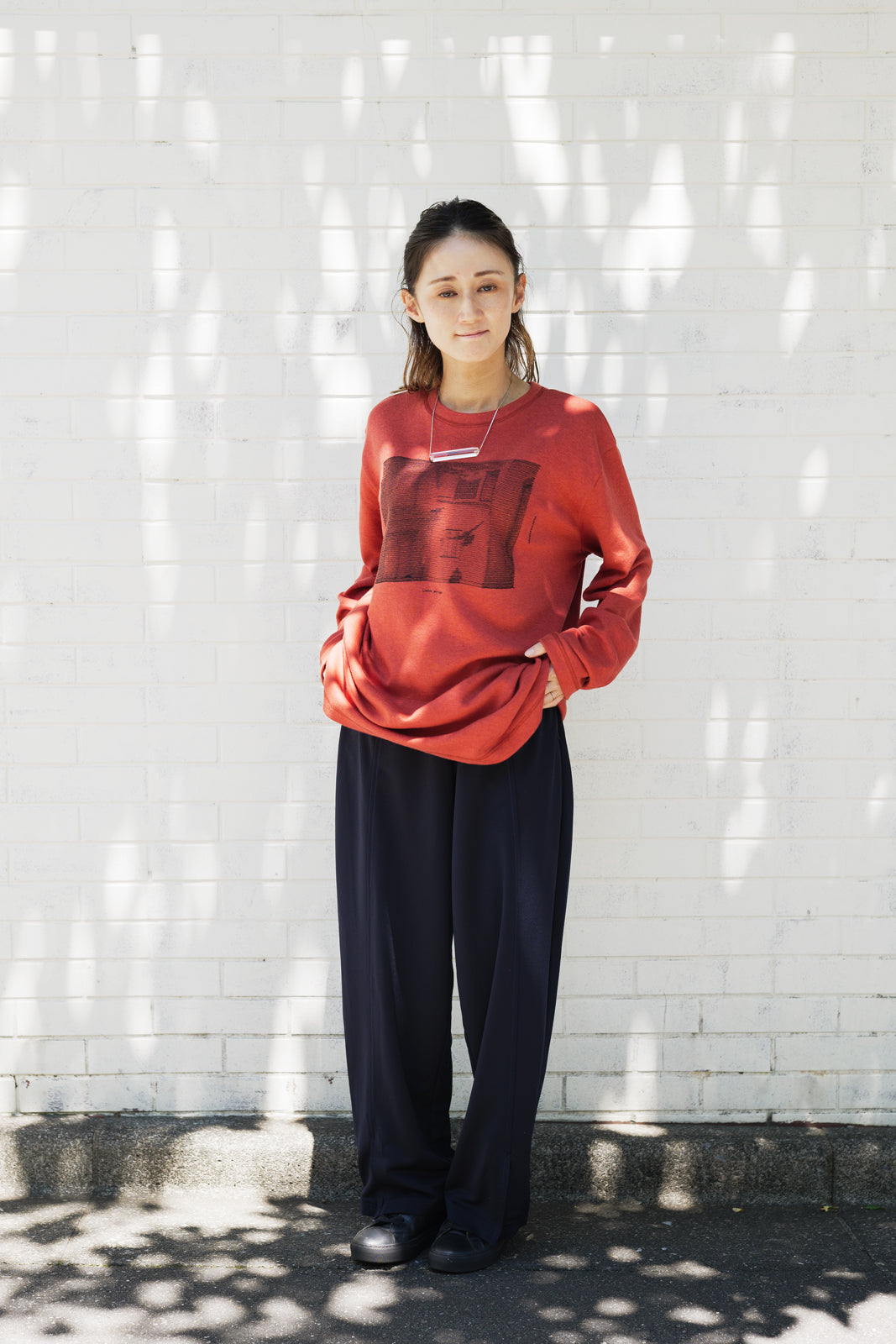 体型を選ばない、ワンサイズのカットソー。 女性はゆったりとしたシルエットで、お尻周りが隠れる、長めの着丈。