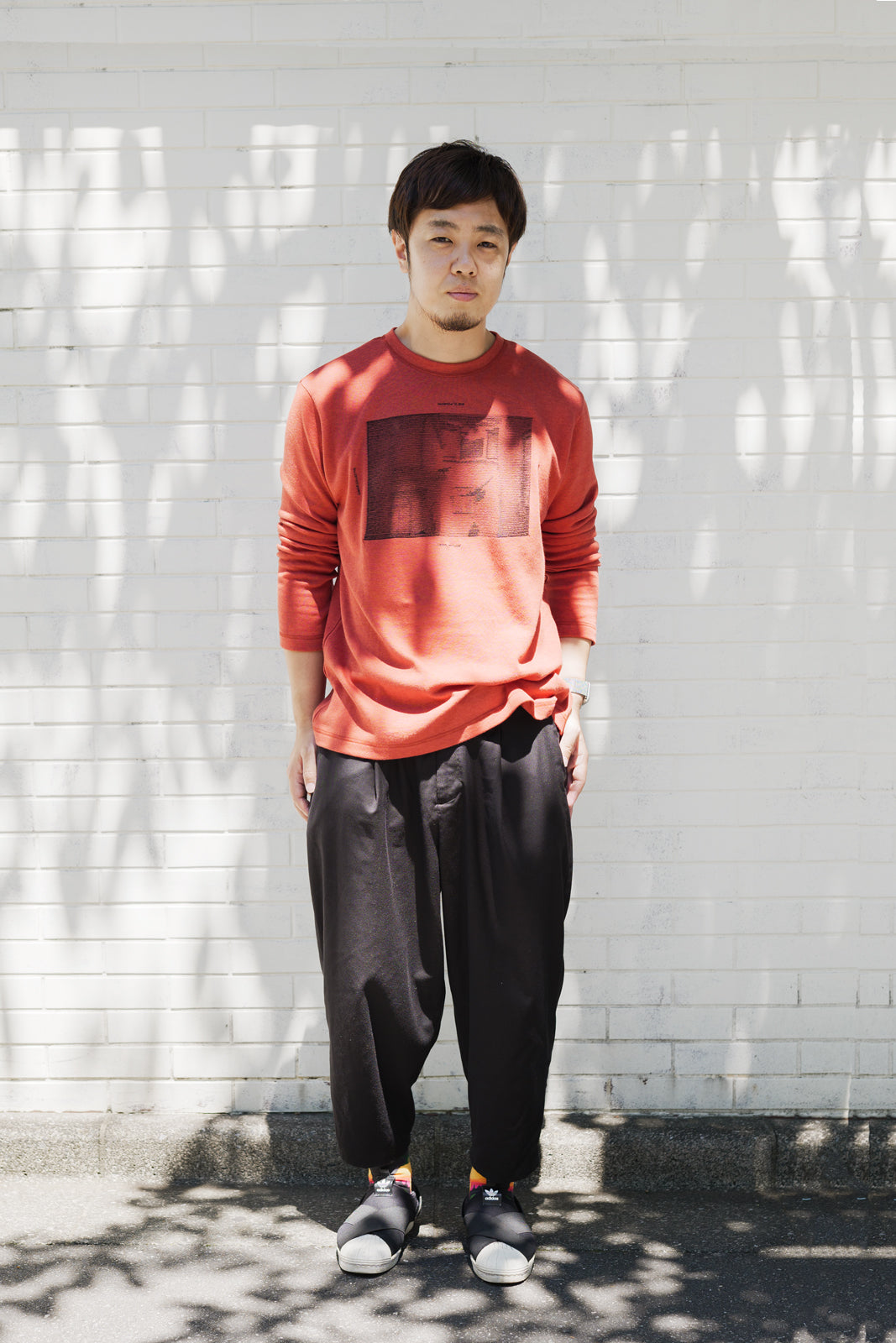 男性はルーズ過ぎないサイズ感で着られるようデザインしました。 男性の肩幅でも、半袖よりは少し長い袖になっています。
