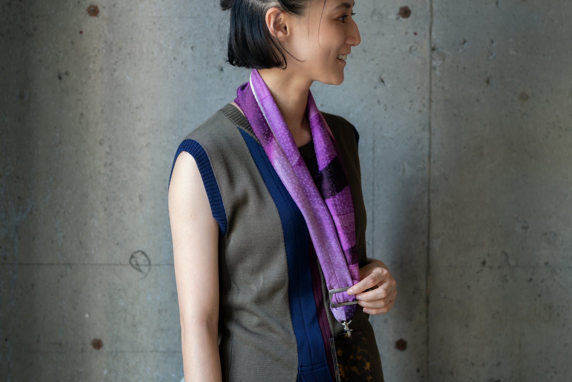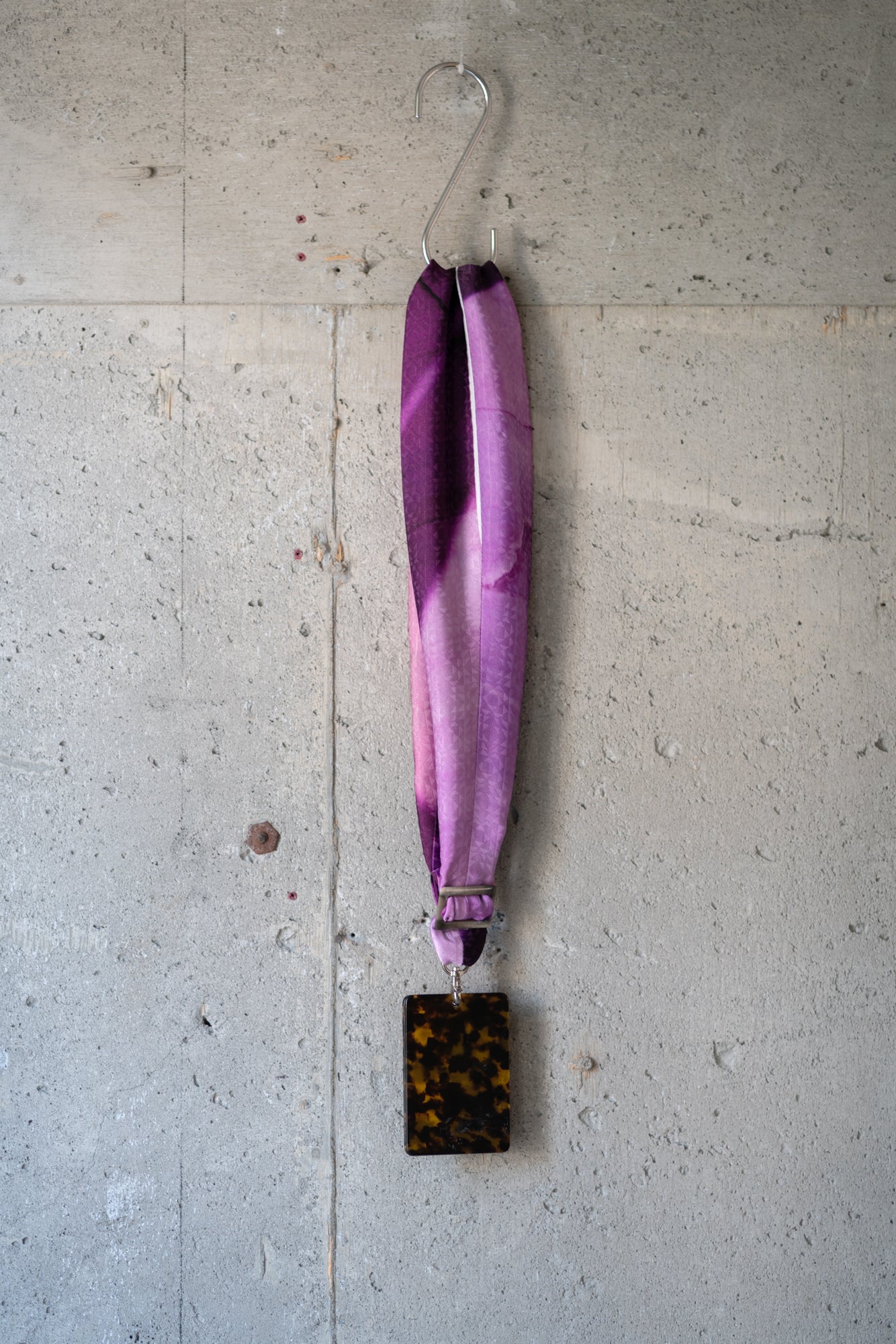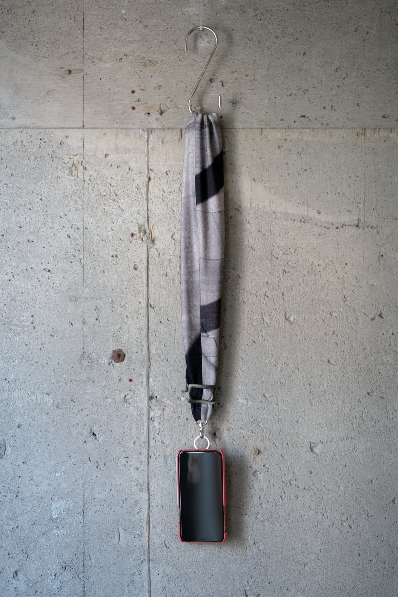 GARDE COLLECTIVE×写真家大門美奈さんとのコラボテキスタイルを使い、杉山さくらさんが手がけるスカーフのようなストラップ ”サクラスリング”を作成しました。