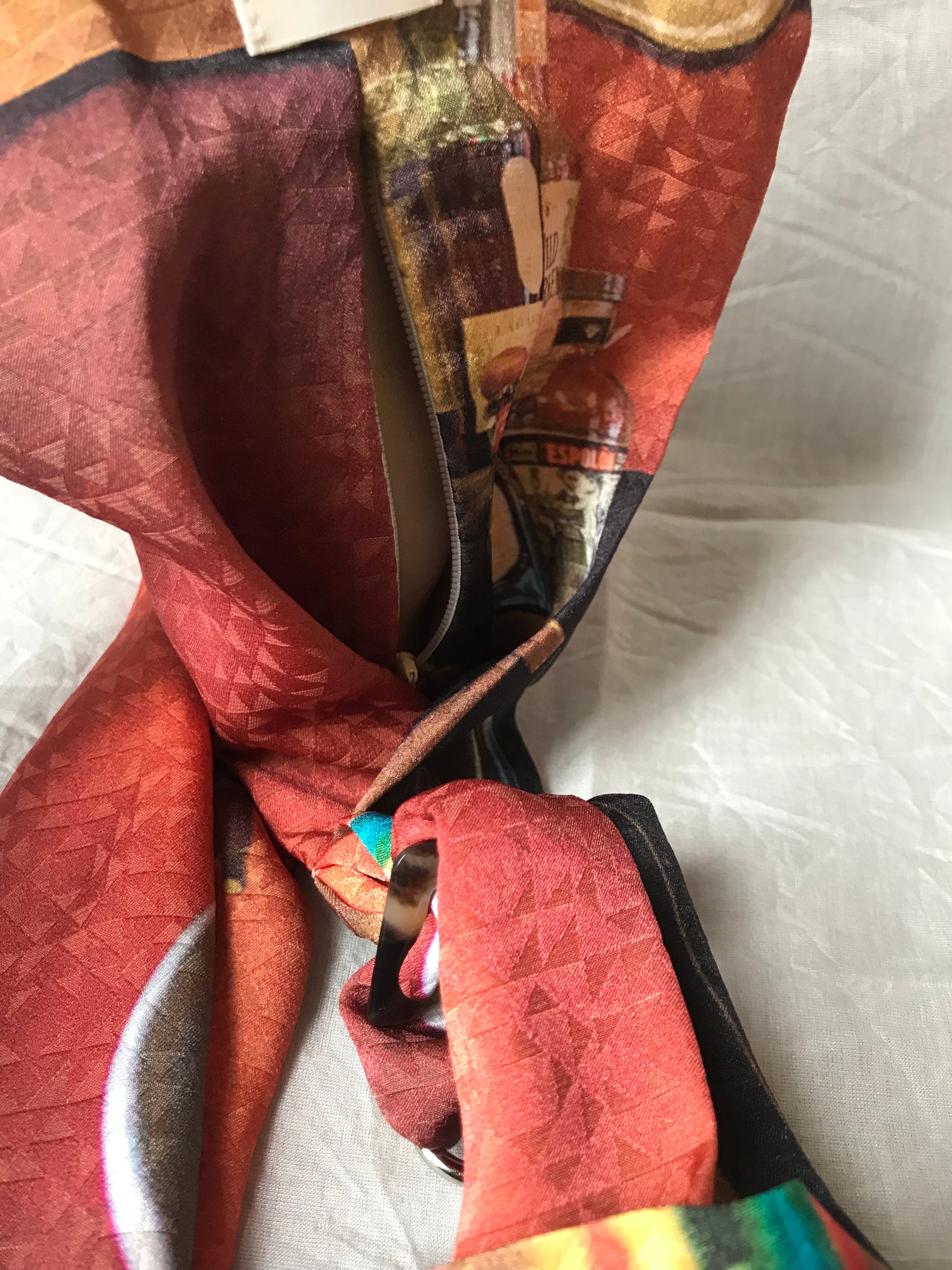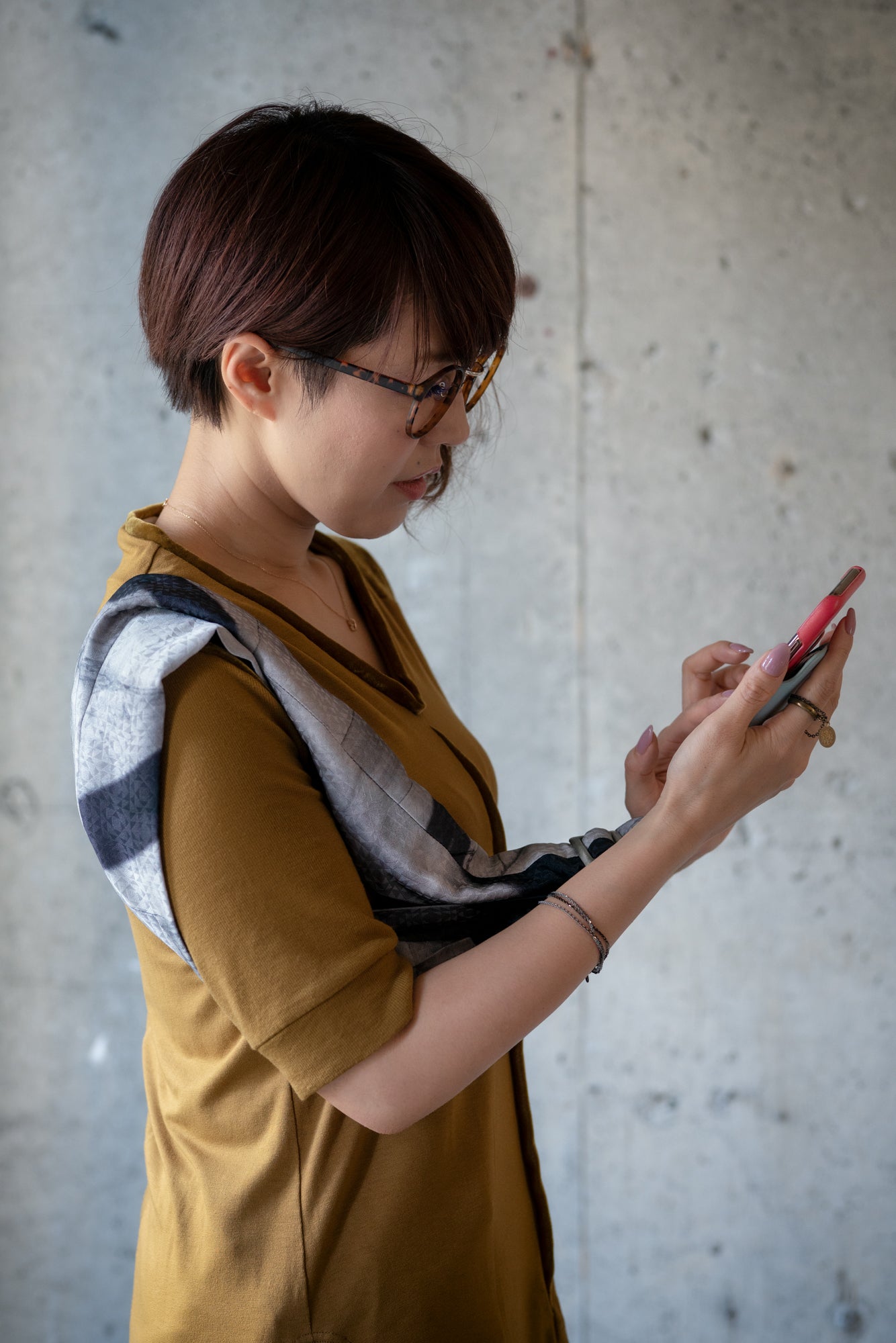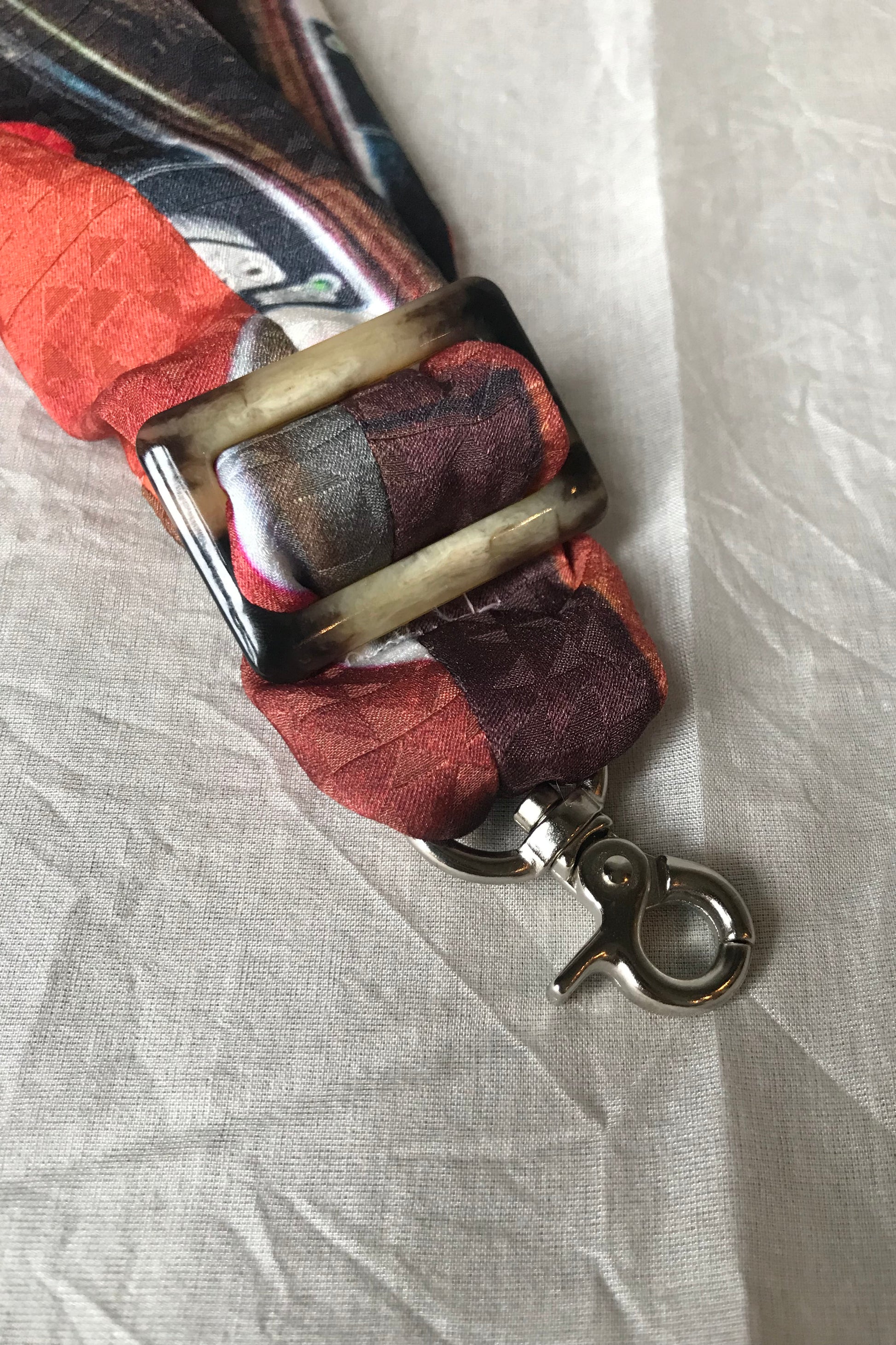 GARDE COLLECTIVE×写真家大門美奈さんとのコラボテキスタイルを使い、杉山さくらさんが手がけるスカーフのようなストラップ ”サクラスリング”を作成しました。